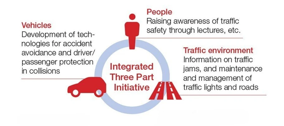 El sueño supremo de una sociedad con una movilidad sostenible es cero accidentes de tráfico. Para lograrlo, Toyota lleva tiempo defendiendo un enfoque integral que abarca no solo vehículos más seguros, sino también a las personas —desde conductores hasta peatones— y el entorno del transporte, como semáforos, carreteras y demás infraestructuras.