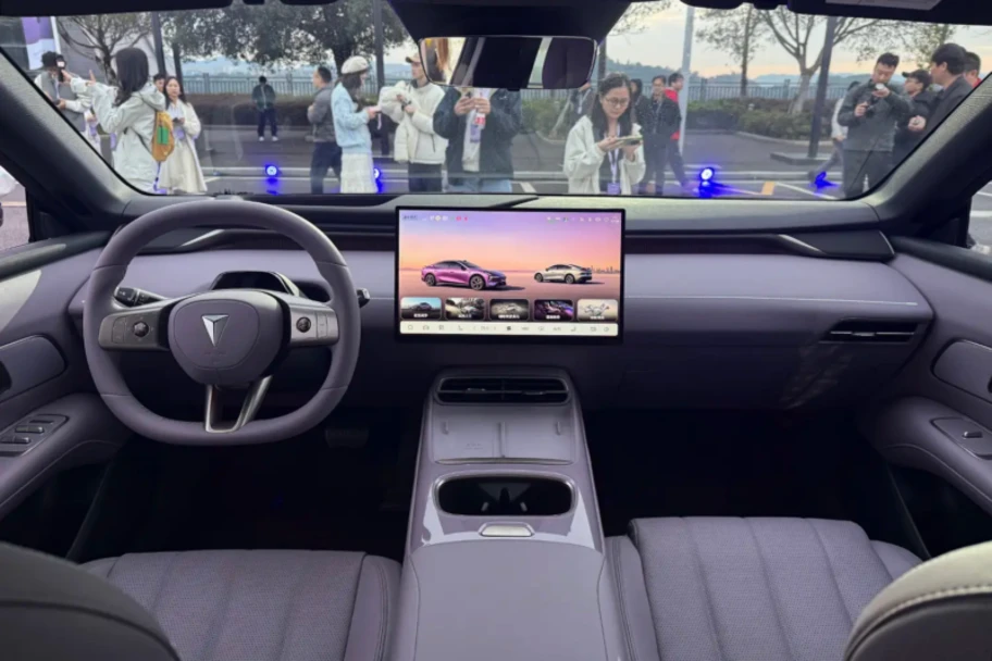 Su interior sobresale por contar con un diseño en forma de T, donde más del 90% de las terminaciones son suaves al tacto, con un volante de tres radios, sistema HUD de 50" en el parabrisas, iluminación ambiental de 256 colores, mientras que el sistema multimedia está sustentado por una pantalla de 15,6".
