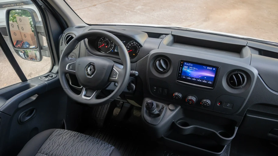 Puertas adentro, presenta un tablero en forma de S, orientado hacia el conductor, ayuda a aumentar el espacio en el habitáculo. Cuenta con un sistema multimedia con pantalla de 7", al tiempo que su volante heredado de la gama de vehículos de pasajeros, es más vertical, regulable en altura.