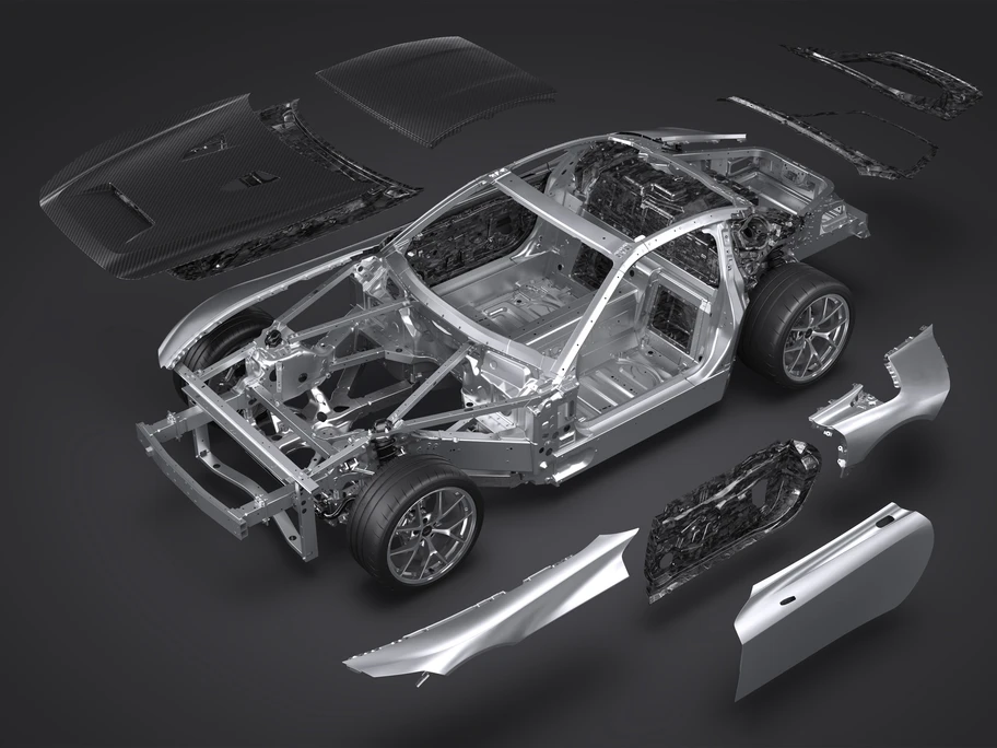 En cuanto a la ligereza y la alta rigidez, que constituyen el segundo elemento clave, el GR GT incorpora la primera carrocería íntegramente de aluminio de Toyota. Además, el uso adecuado de plástico reforzado con fibra de carbono (PRFC), plástico y otros materiales en los paneles de la carrocería ha dado como resultado una carrocería robusta y ligera.