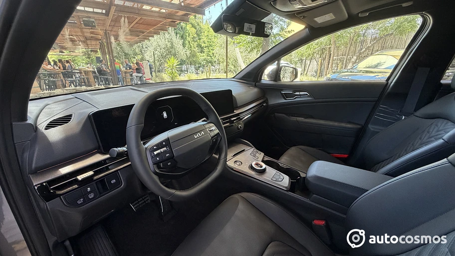 El interior conserva los cambios vistos en el último facelift del modelo, incluyendo nuevos aireadores horizontales, un panel panorámico doble para las pantallas y el nuevo volante de Kia ya visto en varios autos, reconocible por llevar la insignia de la marca a un costado.