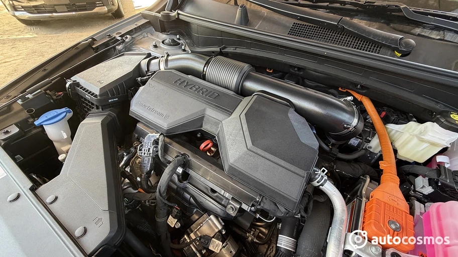 La marca ofrece un tren motriz que ya conocemos de su hermano, el Hyundai Tucson. Consiste en un motor 1.6 Turbo GDI de 178 Hp y 265 Nm, asistido por un motor eléctrico de 47,7 kW y 264 Nm. La suma combinada da 232 Hp y 367 Nm de torque.