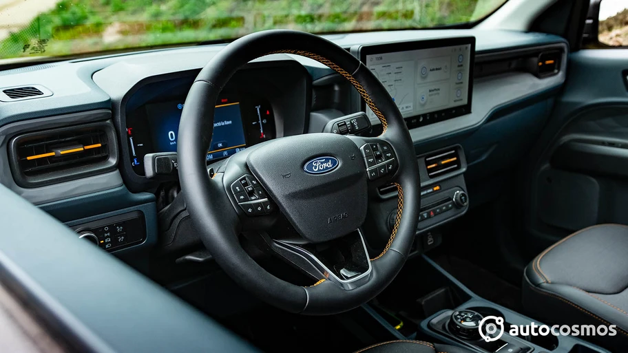El interior de la Maverick 2026 no tiene cambios fuertes en diseño, pero como hay mejoras en equipamiento, por supuesto que hay algunas modificaciones. Por ejemplo, el antiguo clúster mixto de dos esferas con una gran pantalla central para el computador a bordo es reemplazado por una pantalla de 8" completamente digital.