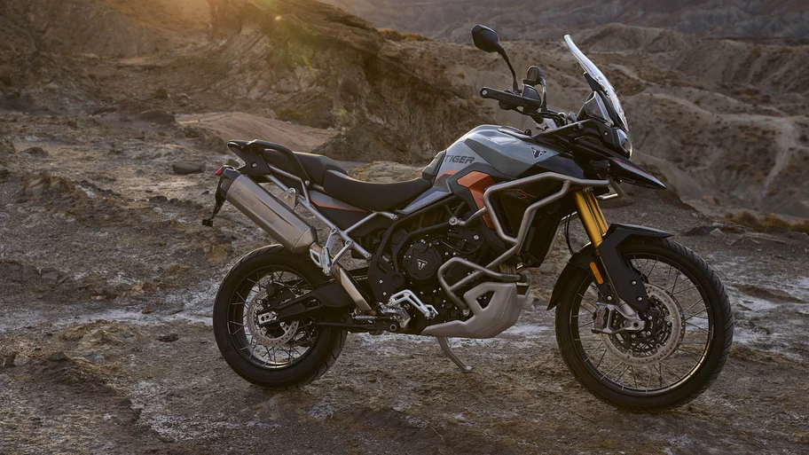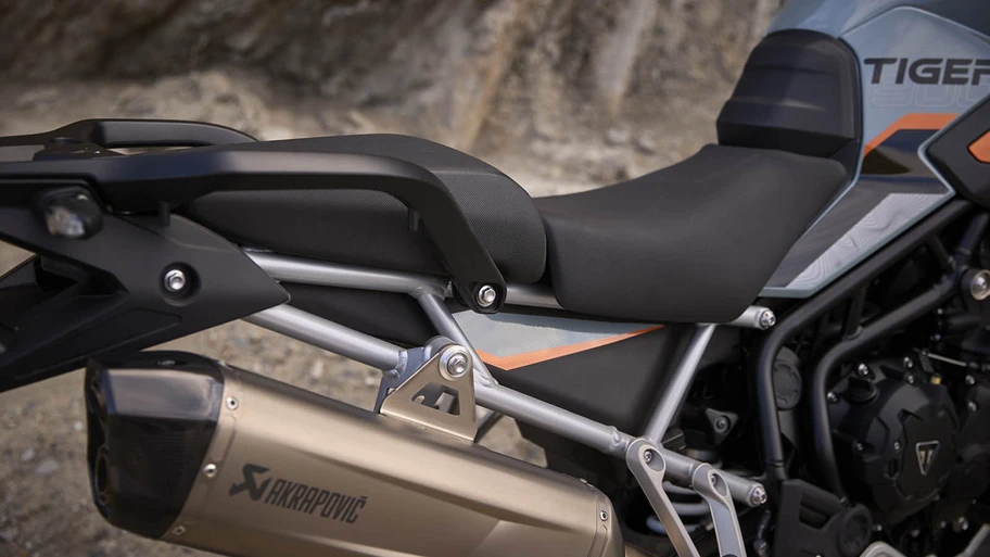 Por primera vez en la gama Adventure, las Tiger 900 Alpine Edition y Desert Edition incorporan de serie un silenciador Akrapovič, así como defensas de motor y para el depósito, respectivamente.