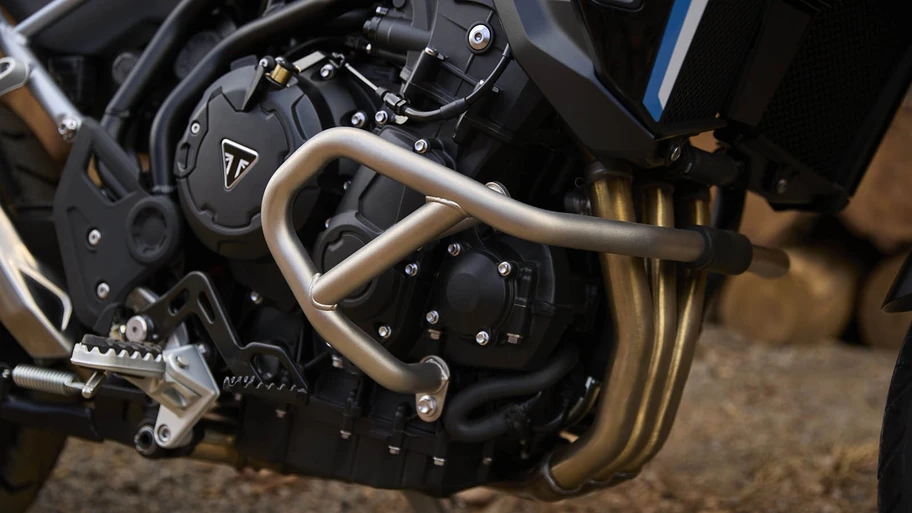 En el corazón de cada Tiger se encuentra el exclusivo motor T-Plane de Triumph, capaz de ofrecer el carácter y la manejabilidad de un bicilíndrico a bajas revoluciones, combinado con el rendimiento de un tricilíndrico cuando se lo exige. Esta configuración garantiza aceleración suave en el rango medio y una entrega de par precisa. La potencia del bloque tricilíndrico es de 107 Hp (108 CV) a 9.500 rpm, en tanto que el torque alcanza los 90 Nm a las 6.850 vueltas.