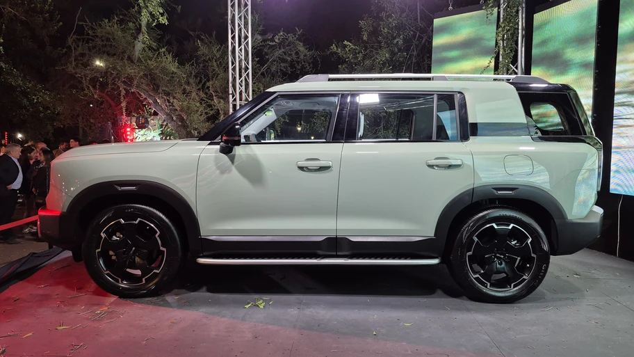 Visto de perfil, el BJ30/BJ30 HEV luce líneas angulosas y cuadriformes, partiendo por su capó sobreelevado, pilares A, B y D en negro brillante, rieles de techo satinados de serie, espejos en resina negra tipo banderín con repetidores de los intermitentes integrados, mientras que en el pilar C encontramos un particular "Easter Egg" al interior de una franja horizontal en negro brillante que muestra un cordón montañoso y la sigla AWD (privativa de la variante HEV).