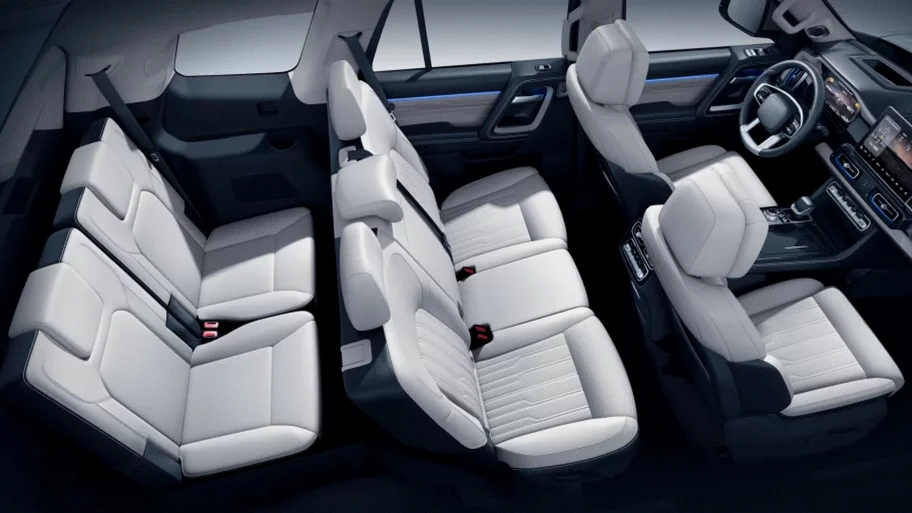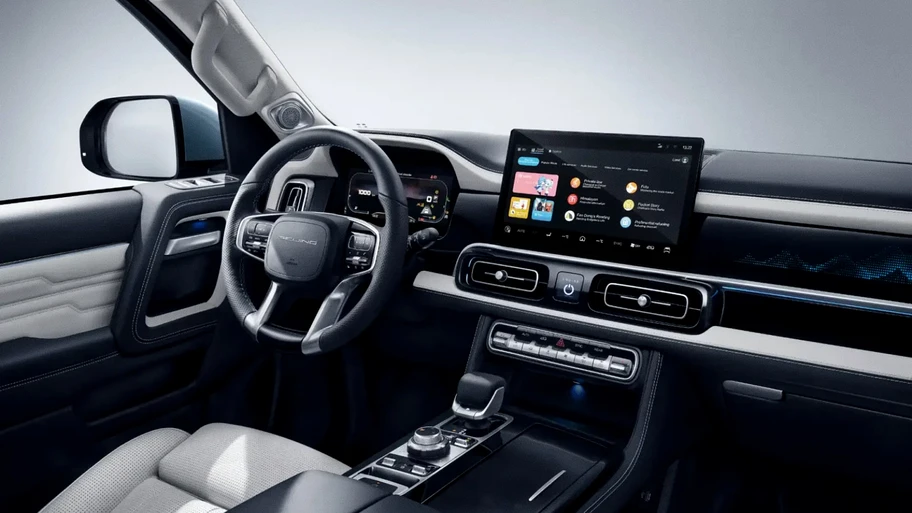 Puertas adentro, junto a una mixtura de plásticos de diferentes texturas y un tapizado de eco cuero, el BJ60 ofrece un equipamiento muy nutrido, que se compone principalmente de un sistema multimedia de 12.8” con AndroidAuto y AppleCarPlay inalámbrico, y panel digital de 10.25”, HeadUp Display, múltiples puertos USB, salida de 220V, sistema de audio Harman Infinity, climatizador de dos o tres zonas con sistema de purificación de aire, asiento del conductor con memorias y modo de bienvenida, asientos delanteros y traseros calefaccionados y ventilados, entre un largo etcétera.