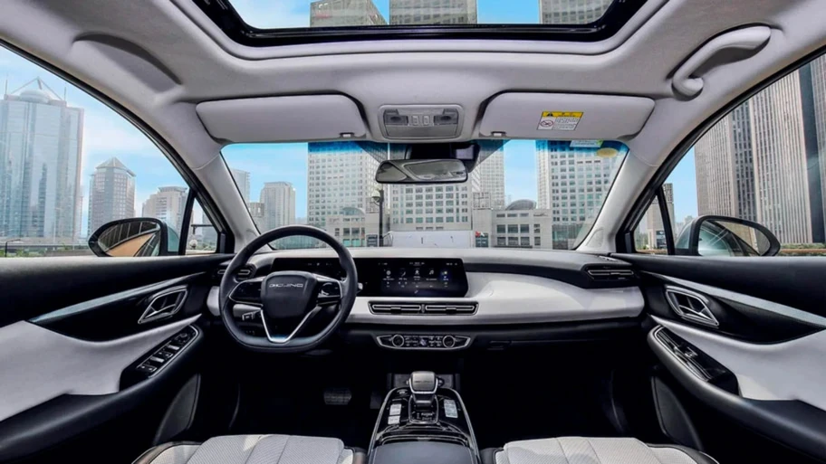 El interior apuesta por la comodidad y la conectividad, con pantalla central de 9 pulgadas, sistema de interconexión con smartphone, climatización eléctrica, asientos con tapiz PVC (cuero sintético). El equipamiento se complementa con sunroof eléctrico, llantas de aleación de 17 pulgadas, espejos eléctricos calefaccionados, ventanas eléctricas en las cuatro puertas y una cuidada iluminación exterior con luces diurnas LED.