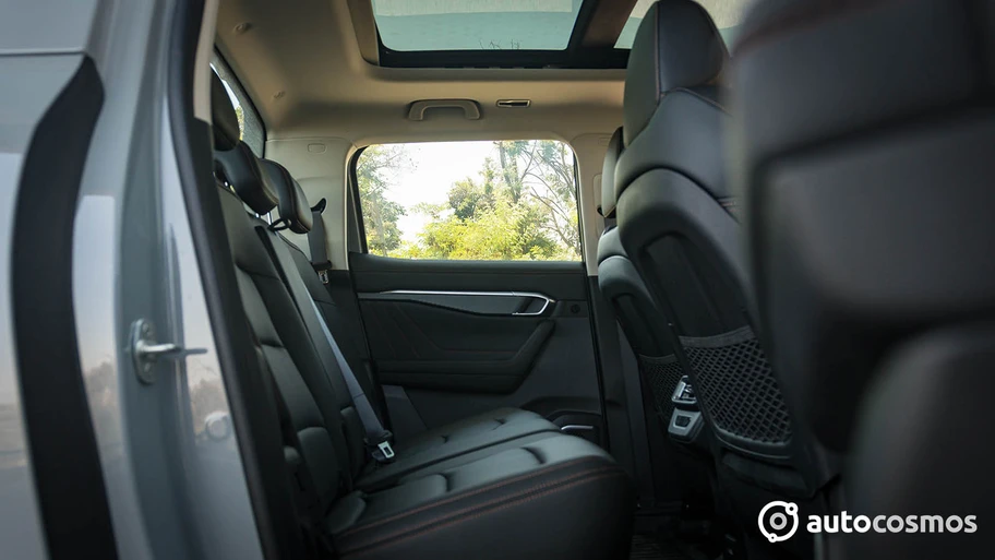 El confort en las plazas traseras es mucho mejor al que encontrarías en una camioneta mediana, aunque siempre la plaza central es un poco más rígida, por el diseño del cojín o el apoyabrazos oculto. Aun así, la postura es un poco más natural y el espacio es abundante. También contamos con manillas, salidas de aire, enchufes y un compartimiento de almacenamiento oculto bajo la banca.