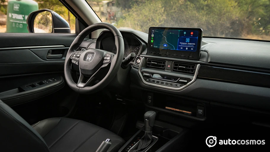 Sobre la CVT, ya contamos que patina menos que otras CVT de Honda así que eso es bueno en la traducción del torque. Las levas al volante solo sirven para acomodar un poco el torque en ciertas circunstancias pero al final, no sirven de tanto. El modo Sport es un poco más útil si necesitas sacar algo extra del motor, pero no mucho más. El fin es el ahorro y circular desatorado: en carretera alcanza los 120 km/h a las 2.500 vueltas.