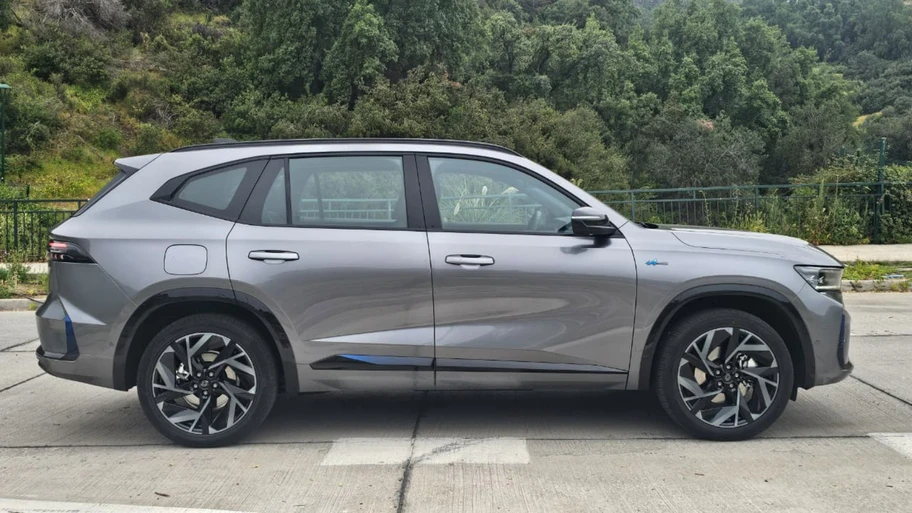 El lateral es más sobrio, con línea de carácter fluida, llantas de gran tamaño, barras techo y una zona trasera de vidrios polarizados para dar la sensación de techo flotante. Atrás hay faros unidos por barra LED que grita origen chino.