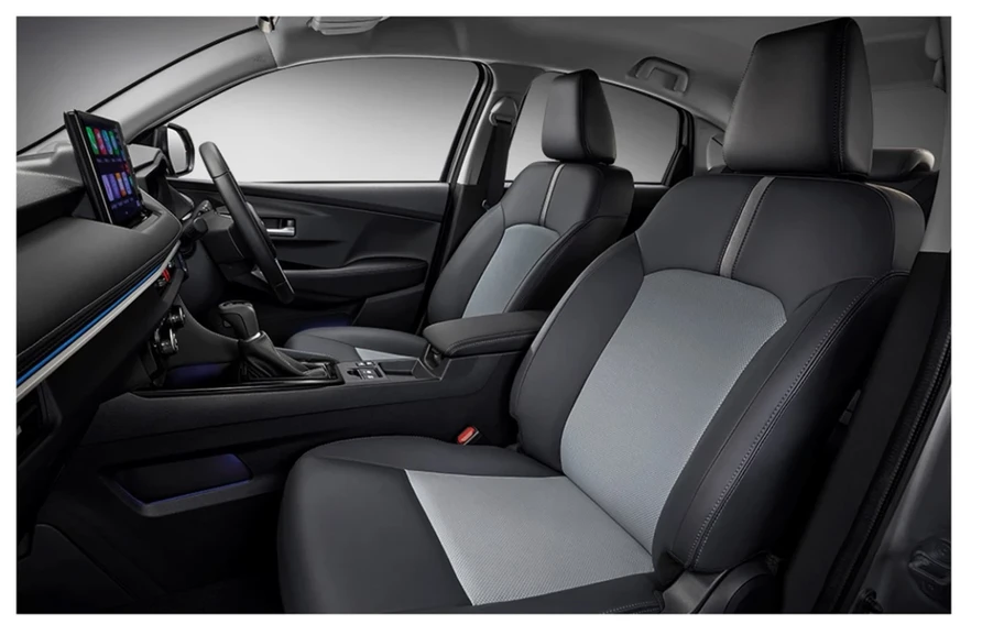 Por dentro, el Yaris Sedán HEV presenta una nueva pantalla táctil que pasa de 7" a 10,1", siempre con Android Auto y Apple Car Play inalámbricos, además de nuevos asientos tapizados en cuero sintético negro/gris.