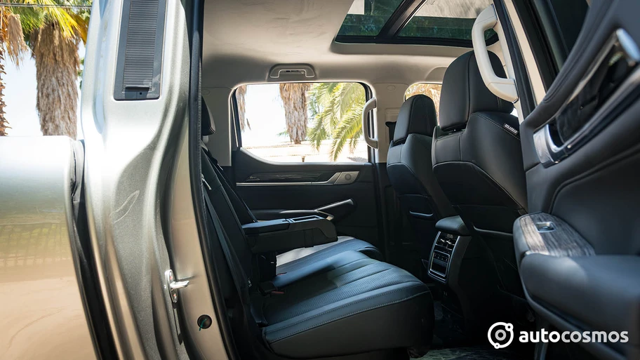 ¿Y el equipamiento? Es bastante acorde a sus terminaciones. De hecho, es tremendamente llamativo el hecho de que los asientos son eléctricos y climatizados en la primera y segunda fila. También cuenta con reglajes laterales (lo que comúnmente llaman “Boss Mode”) para el copiloto, masaje y memoria en primera fila, en conjunto con unos pequeños cajones bajo los asientos posteriores.