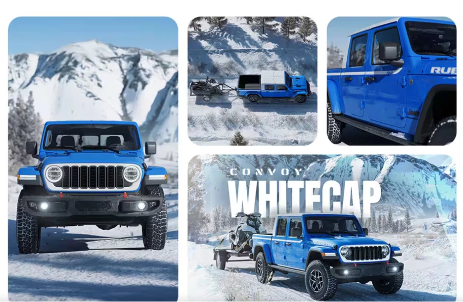 Jeep presentó en Estados Unidos, la segunda edición especial de su camapaña Convoy. Se trata del Gladiator Whitecap, que se une al Wrangler de la misma serie presentado el año pasado. Se trata de una inspiración retro que destaca por la su techo rígido en blanco brillante, además del contorno de la parrilla en la misma tonalidad, a lo que se suman la presencia de franjas blancas que nacen desde los retrovisores y se extienden por los laterales bajo las ventanillas con la inscripción "1941".