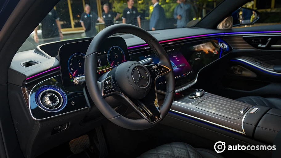 El panel de instrumentos fue rediseñado, con la nueva MBUX Superscreen, se integra a la perfección en el habitáculo. Los nuevos y elegantes revestimientos de las puertas y la consola central también luce rediseñada con inserciones de madera y combinan los mejores materiales con un diseño ergonómico. La consola cuenta con nuevos portavasos iluminados y compartimentos para teléfonos móviles de fácil acceso, lo que permite la carga inalámbrica de hasta dos teléfonos, uno al lado del otro, al alcance tanto del conductor como del acompañante. Además, la carga por cable USB-C con una potencia de hasta 100 W garantiza opciones de carga rápidas y cómodas para todos los ocupantes.