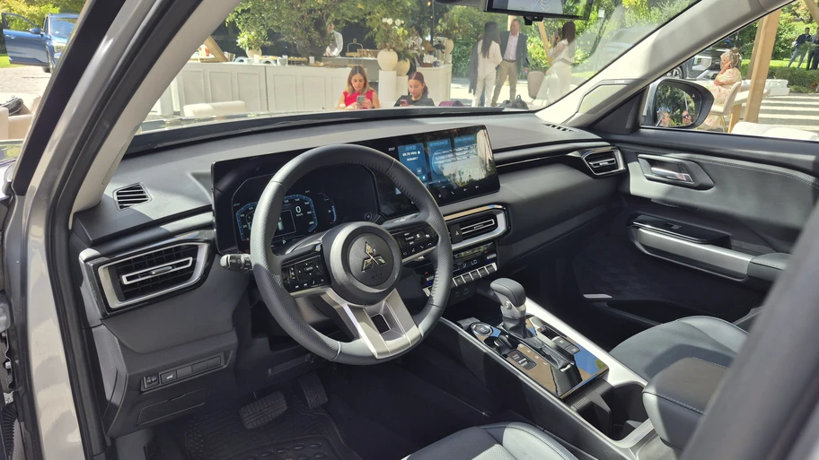 Su cabina interior no es exactamente la misma que la del Outlander Sport, lo que habla de un mayor énfasis en la diferenciación. Si, la ergonomía es la misma, los botones, la posición de los aireadores, el volante y el equipamiento digital son iguales (e intercambiables), pero el envoltorio es lo que cambia, dando una vibra menos moderna pero más lujosa y tradicional por medio de molduras color negro brillante, superficies suaves y tapicería en color negro, que puede ser tela o cuero (según versión).