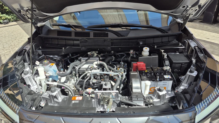 Bajo el capó encontramos el bloque motriz signado como 4B40, el mismo usado por Eclipse Cross, de 1.5 litros de desplazamiento turboalimentado con 4 cilindros en línea y 16 válvulas DOHC, que entrega 161 Hp de potencia y 250 Nm de par, gestionado por una transmisión automática del tipo CVT que envía el par al eje delantero (2WD). Mitsubishi revisó el 4B40 para mejorar su respuesta, utilizando un intercooler aire-agua diseñado deliberadamente para ser corto. Esta configuración reduce el retardo al disminuir la distancia que debe recorrer el aire de admisión.