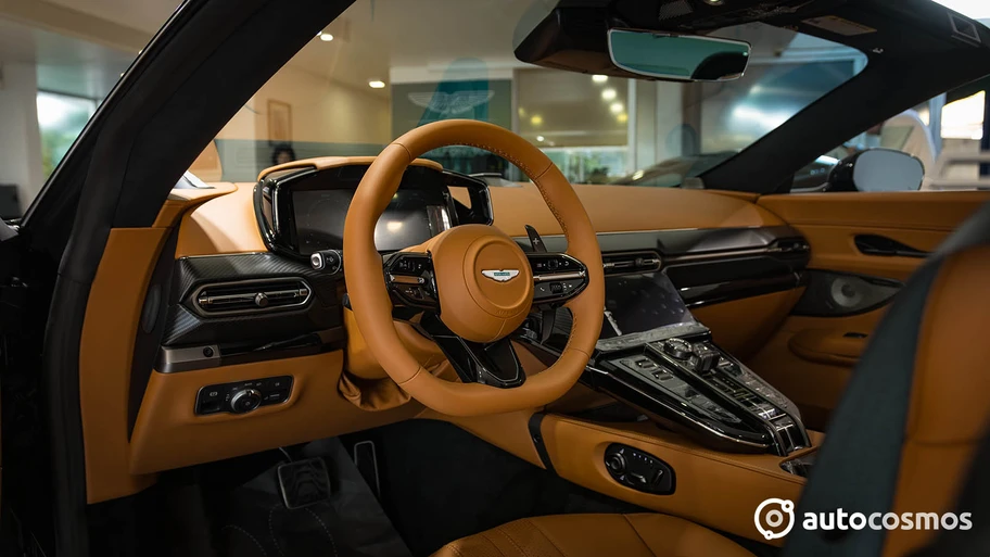 El habitáculo de este biplaza incorpora la nueva generación del sistema de infoentretenimiento de Aston Martin, que combina una multipantalla con la tecnología de pantalla táctil Pure Black de 10,25”. Los melómanos agradecerán contar con el sistema de audio Aston Martin de 390w y 11 altavoces, desarrollado utilizando un hardware avanzado para incluir un modo de sonido Surround con procesamiento de sonido envolvente QuantumLogic. A pedido se ofrecerá otro desarrollado con Bowers & Wilkins.