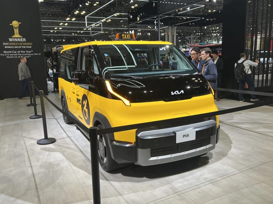 El área de exhibición de Kia presenta el prototipo del que podría ser un modelo muy popular como taxi en la ciudad que nunca duerme. Se trata de la minivan eléctrica PV5 pintada como taxi neoyorkino, además de contar con gráficas que aluden a que está habilitado para transportar a personas con movilidad reducida, producto de una alianza entre la surcoreana y la empresa especializada en adaptar vehículos, BraunAbility, por lo que el modelo podría ser incorporado a las flotas de taxis norteamericanas más temprano que tarde, por cuanto este modelo de pruebas será sometido a pruebas bajo condiciones reales.