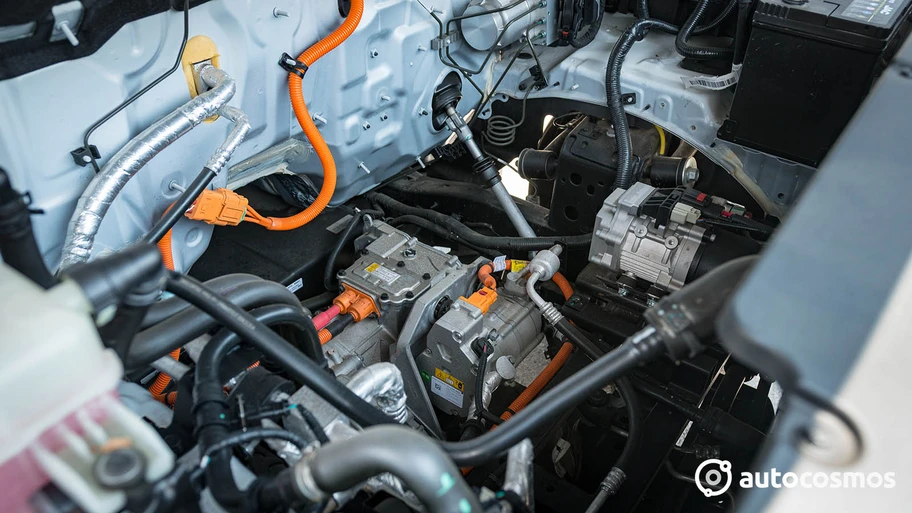 La suspensión trasera es de ballestas y la dirección, aunque la marca señala que cuenta con asistencia eléctrica, al revisar el vano motor nunca vi ningún tipo de cableado eléctrico hacia el rack de la dirección, más que la bomba hidráulica y el reservorio con el líquido. La sensación de la dirección es que le falta ir más al ritmo de este nuevo tren motriz eléctrico, o sea, que se sienta ágil cuando debe serlo y estable cuando la condición lo requiera.