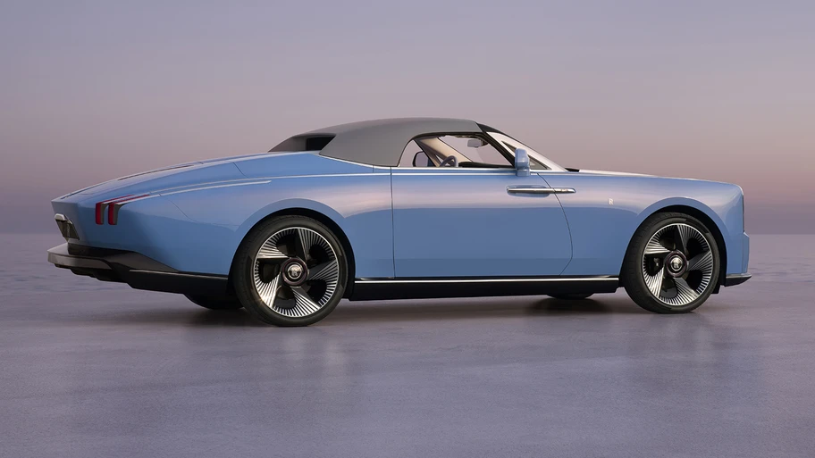 Este Nightingale es cualquier cosa menos un ruiseñor. Esto lo decimos porque, mientras un ruiseñor promedio se encuentra entre los 15 y 16 centímetros de tamaño, el nuevo biplaza de Rolls-Royce mide 5,76 metros de largo. Y por su diseño, es técnicamente "un yate" con cuatro ruedas, algo que puedes apreciar al verlo desde la "popa". No por nada las enormes llantas de 24" parecen una turbina marina.
