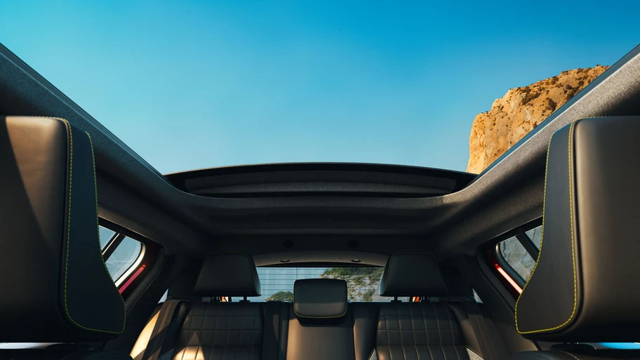 El techo cuenta con accionamiento eléctrico, ya sea desde la llave (a distancia) o desde un comando situado cerca del espejo retrovisor interior) o bien por comando vocal, pudiendo abrirse o cerrarse en múltiples secciones intermedias.