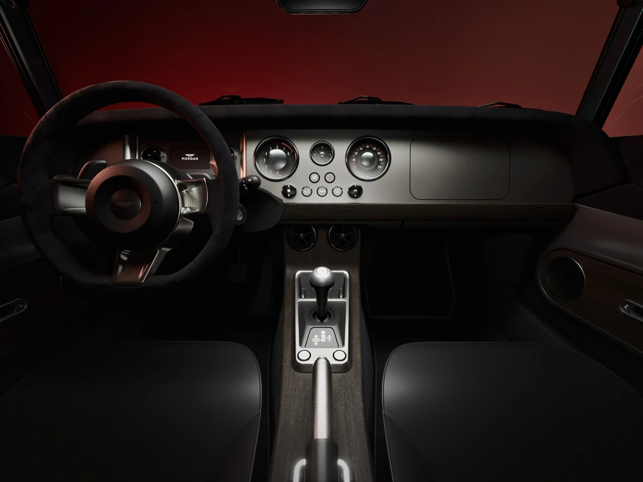 Esta nueva versión viene acompañada de una sutil evolución de su lenguaje de diseño, sin perder la sobriedad y la claridad propias de un Morgan moderno. Las nuevas tomas de aire en las aletas delanteras mejoran el flujo de aire y la refrigeración, a la vez que confieren al coche una identidad propia. Los acabados revisados de la parte inferior de la carrocería aumentan el contraste entre las fluidas superficies de aluminio y los elementos técnicos, reforzando la relación entre diseño e ingeniería. El resultado es una presencia visual más imponente que conserva el inconfundible sello de Morgan.