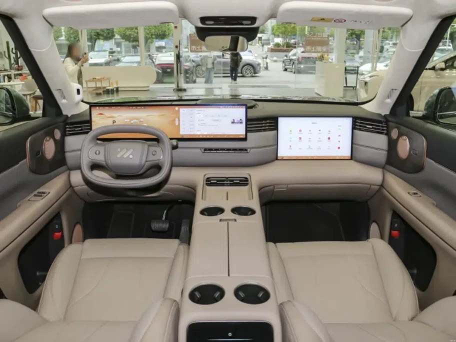 Presenta una cabina con diseño envolvente, con dos pantallas: una central de 27,1", la que se complementa con otra destinada al pasajero delantero de 15,6". El sistema multimedia es gestionado por un chip Qualcomm 8295P, mientras que los amantes del buen sonido se regocijarán con el sistema B&O con 25 parlantes.